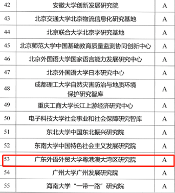 12月17日,由南京大学和江苏省社会科学院共同主办,南京大学中国智库研究与评价中心承办的“2022新型智库治理论坛”在南京市举办。论坛发布了“CTTI2022年度高校智库百强榜”,广东外语外贸大学粤港澳大湾区研究院入选CTTI年度高校智库百强榜,并进入A级榜单。
