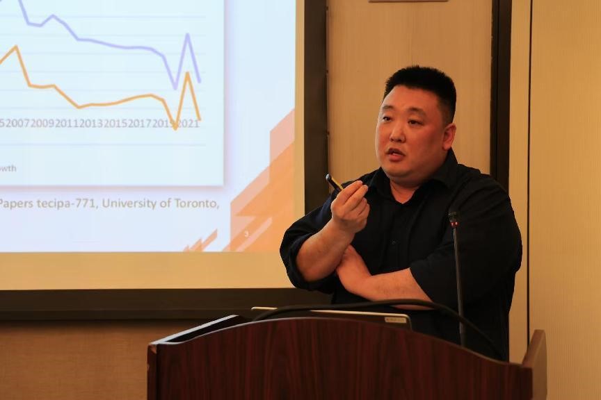 哈尔滨工业大学(深圳)经济管理学院副教授王睿新主要从企业产品质量升级的视角论述了企业在实现高质量发展过程中遇到的挑战,他提到在中国融入全球价值链升级的背景下,企业应该注重利用新质生产力进行创新并提高生产效率。