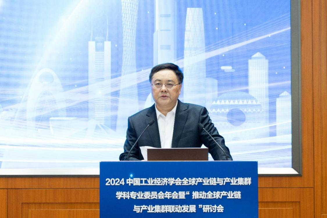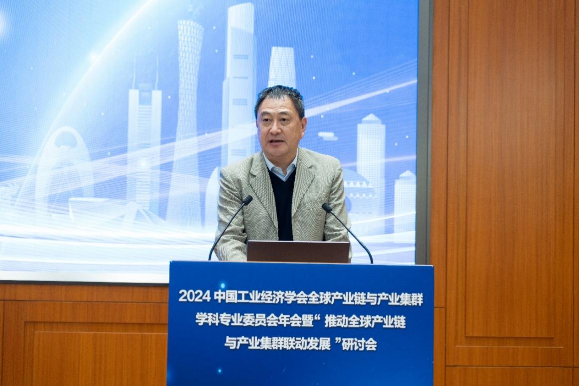 隋广军副理事长对广东外语外贸大学产业经济学学科的发展历程进行了回顾。他指出,在当今全球化的大背景之下,强化全球产业链与产业集群之间的联动关系,进而塑造全新的动能优势,完善高质量发展机制,已然成为理论学术界迫在眉睫需要攻克的重大时代命题,同时也是产业界当下必须直面应对的现实挑战。隋广军副理事长进一步表示,于新的发展态势之中,全球产业链与产业集群联动向前发展已是大势所趋、势在必行。就中国而言,在参与全球产业链与产业集群联动发展的进程里,要凭借创新驱动以及开放合作的双轮驱动模式,全力构建协同共赢的全新格局。展望未来,全球产业链与产业集群的联动将会朝着智能化、绿色化、协同化以及多元化的方向蓬勃发展。