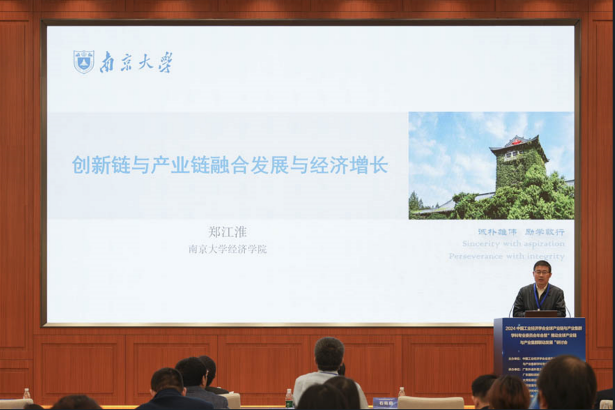 郑江淮院长主旨演讲题目为《创新链产业链融合发展与经济增长》。他指出,从产业链部署创新链来看,技术创新提升了企业竞争力和市场份额,推动形成超级明星企业,这些企业通过技术引领和扩散,为经济增长带来显著效益。产学研深度融合和大模型技术的应用降低了研发摩擦,提高了创新效率,尤其在颠覆性创新方面表现更为突出。此外,地区间的技术互补与创新布局也有助于缓解地理阻隔,形成多个创新中心和人才中心,支撑省级贸易增长。未来需培育世界领军企业,构建区域创新高地,以实现经济更高质量发展的目标。