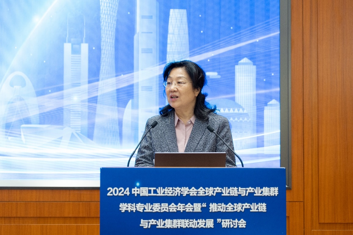 史丹理事长对中国工业经济学会全球产业链与产业集群学科专业委员会年会的召开表达了衷心的祝贺。她强调了全球化发展中产业链、产业集群的重要性以及当下逆全球化趋势下中国产业链的关键作用,并指出广东学界在相关研究领域扮演着重要角色。史丹理事长对专委会的未来发展也寄予厚望,期待在专家学者携手奋进下,产出一系列具有高水准、高价值的研究成果,精准打通学界研究与企业实践需求之间的梗阻,推动产业界与学术界构建起稳固且高效的互动合作桥梁,构筑起全球产业链与产业集群领域专业人才的成长摇篮,为后续学术探索与行业进阶厚植人才根基,积蓄磅礴力量。