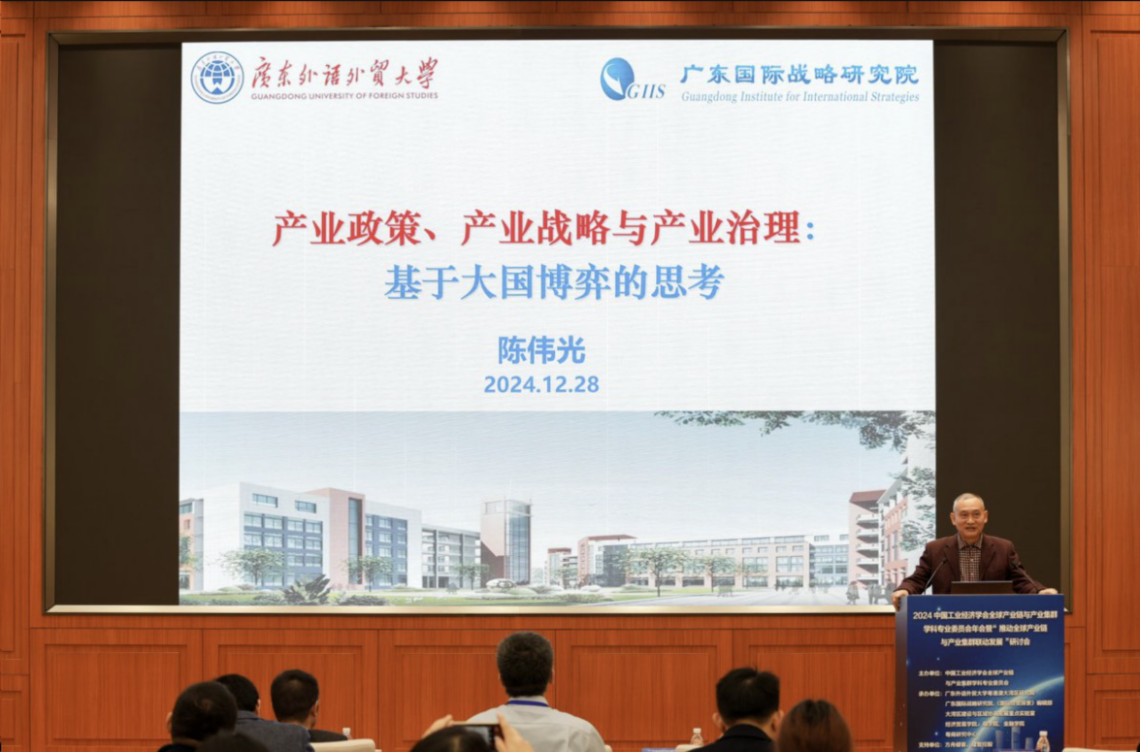 2024年12月28日,中国工业经济学会全球产业链与产业集群学科专业委员会年会暨“推动全球产业链与产业集群联动发展”研讨会在广东外语外贸大学成功举办。本次会议由广东外语外贸大学、中国工业经济学会全球产业链与产业集群学科专业委员会联合发起,广东外语外贸大学粤港澳大湾区研究院、广东国际战略研究院、《国际经贸探索》编辑部、大湾区建设与区域协调发展重点实验室、经济贸易学院、商学院、金融学院、粤商研究中心等承办,旨在为广大专家学者、业界人士搭建理论探索和实践经验交流平台,推动全球产业链与产业集群联动发展。来自中国社会科学院、北京大学、南开大学、厦门大学、南京大学、中山大学、上海财经大学、中南财经政法大学、暨南大学、华东理工大学、中国社会科学院大学、上海大学、南京财经大学、海南大学、浙江工商大学、新疆财经大学、广东外语外贸大学等20多所高校、科研院所和企事业单位的专家学者参加本次会议。