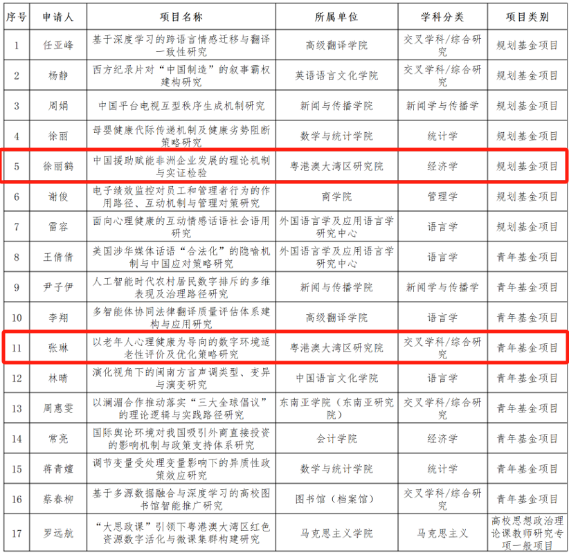 近日,2025年度教育部人文社会科学研究项目立项结果正式公示。经教育部组织评审,我院徐丽鹤教授申报的课题“中国援助赋能非洲企业发展的理论机制与实证检验”以及张琳副研究员申报的课题“以老年人心理健康为导向的数字环境适老性评价及优化策略研究”均获立项。